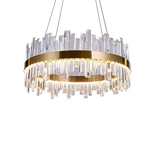 Este pendente de cristal impressiona com seu design circular e exuberante. A estrutura metálica em acabamento dourado abraça uma composição artística de cristais transparentes em diferentes alturas, criando um efeito visual que remete a estalactites de gelo. A iluminação interna ressalta o brilho dos cristais, proporcionando um espetáculo de luz e sofisticação.